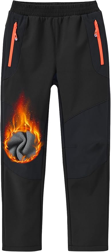 Kids Fleece Lined Hiking Snow Ski Pants Boys Waterproof Winter Warm Outdoor Pants with Zippered Pocket