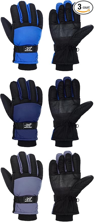3 Pairs Kids Winter Gloves Waterproof Snow Ski Gloves Warm Outdoor Windproof Adjustable Gloves for Cold Weather