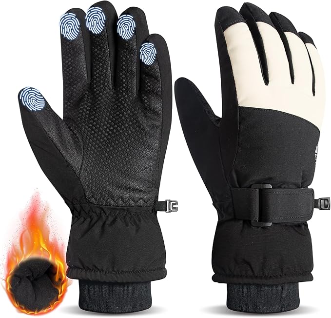 Kids Winter Waterproof Ski Gloves, Snowboarding Touchscreen Cycling Gloves for Boys Girls As Stocking Stuffers