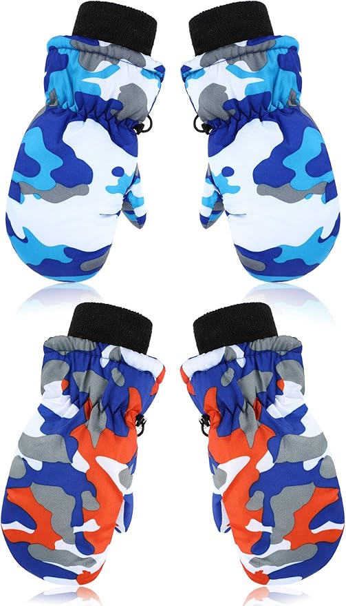 2 Pairs Winter Kids Snow Mittens Unisex Waterproof Ski Mitten Winter Warm Gloves for Kids