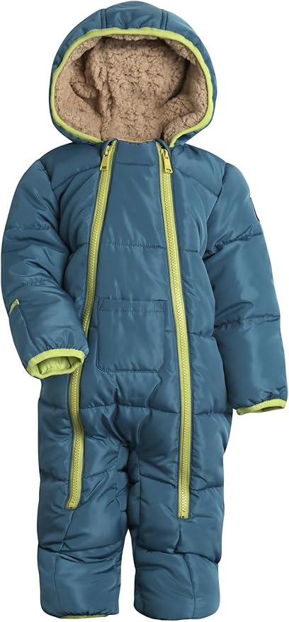 Baby Boys' Snow Pram - Newborn Sherpa Hood One Piece Snowsuit - Cozy Polar Fleece Lined Winter Coat for Baby Boys 12-24M