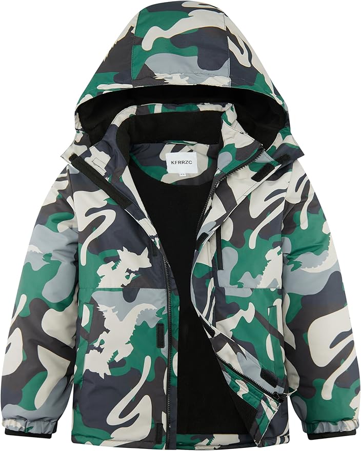 Boys Waterproof Ski Jacket Fleece Lined Warm Winter Snow Coat Hooded Winter Jacket for Kids