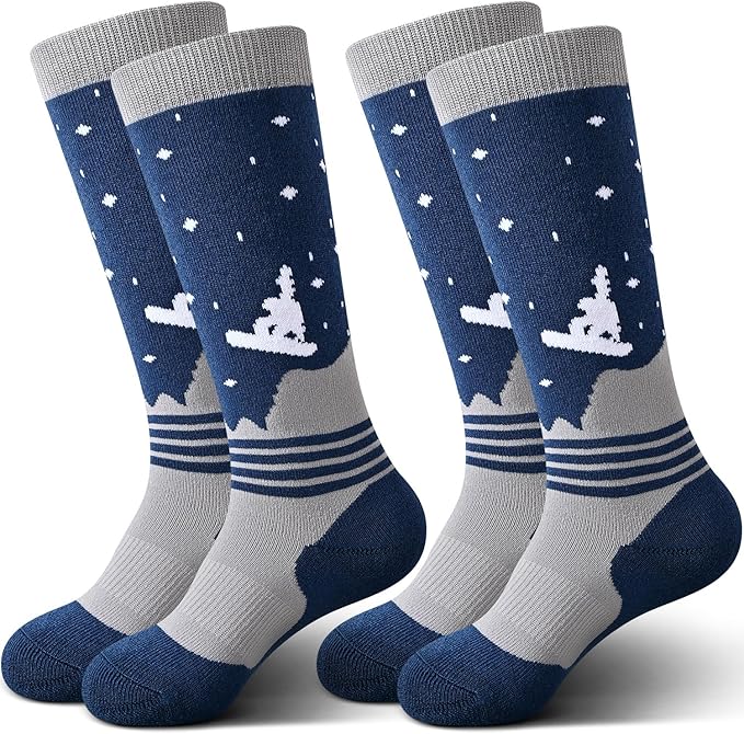 Kids Ski Socks, 2 Pairs Knee-high Warm Thermal Winter Snowboard Socks for Girls Boys Toddler