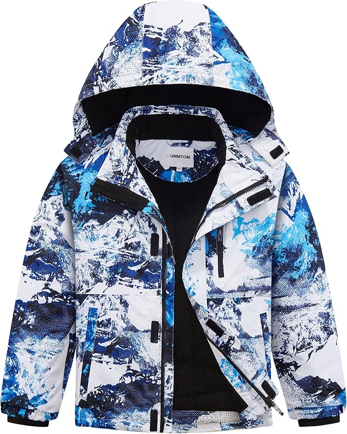 Boys Waterproof Ski Jacket Warm Winter Fleece Snow Coat Kids Outdoor Hooded Snowboard Jacket