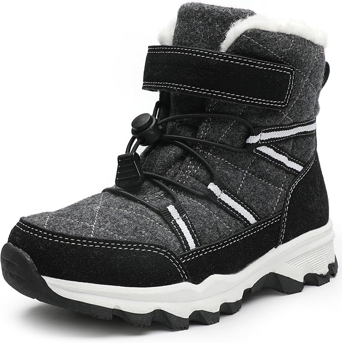 Boys Girls Wool Lining Snow Boots Winter Walking Boots for Kids Non Slip Unisex-Child Cold Weather Shoes Outdoor Boots