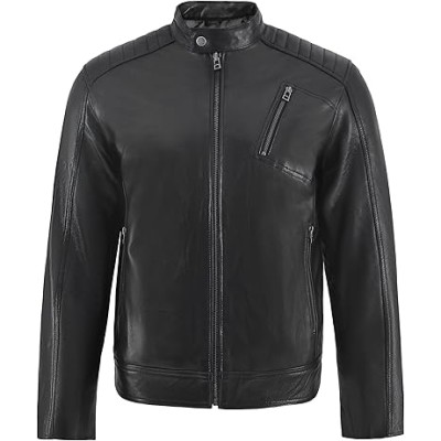 Men's Genuine Lambskin Leather Motorcycle Jacket – Vintage Cafe Racer Style Slim Fit Biker Coat