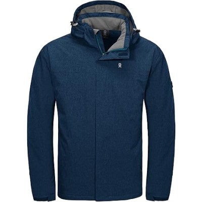 Men's Waterproof Ski Snowboarding Jacket Windproof Warm Coat with Detachable Hood