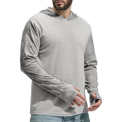 Men's UPF 50+ Sun Protection Hoodie Long Sleeve SPF Fishing Hiking Running Thumbhole Shirts Hooded Quick Dry Lightweight