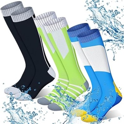 3 Pairs Waterproof Socks Unisex Knee High Fishing Socks Breathable Knit Long Calf Hiking Sock for Men Women Kayaking Beach rainy