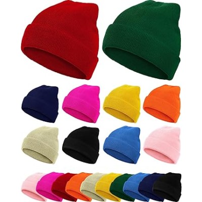 80 Pack Winter Beanies Hats Bulk for Homeless Unisex Cold Weather Stretch Caps Warm Knitted Cuffed Hats for Women Men