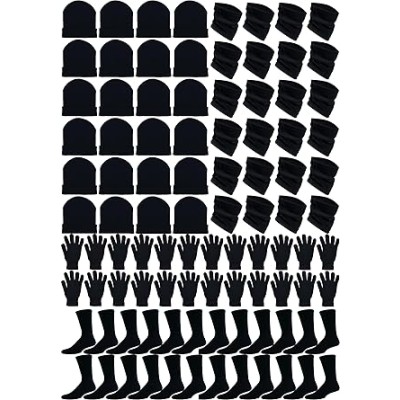 96x Winter Gloves, Beanies, Crew Socks, Neck Warmers Donation Charity Care Bulk Bundle