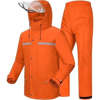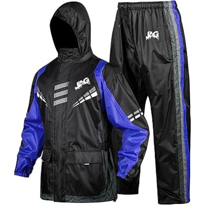 Motorcycle Rain Suit for Men & Women - 2 Pieces Waterproof Rain Jacket & Pants | Reflective Rain Coat with Hoodie