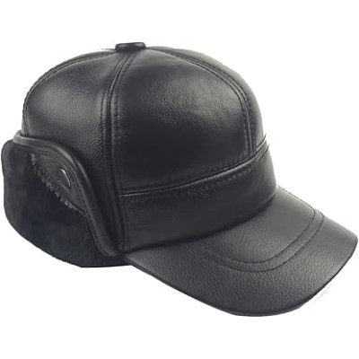 Winter Leather Baseball Cap Earflap Fitted Hats Men Soft Hunting Hat