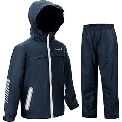 Kids Rain Gear Boys Girls Youth Waterproof Rain Suit Breathable Reflective Raincoat and Pants